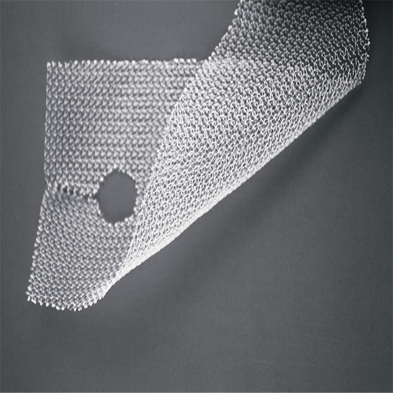 3)  网间孔隙大,网丝内不宜隐藏细菌,耐受感染能力强,并有效刺激纤维组织增生,有利组织生长穿过,促进愈合。