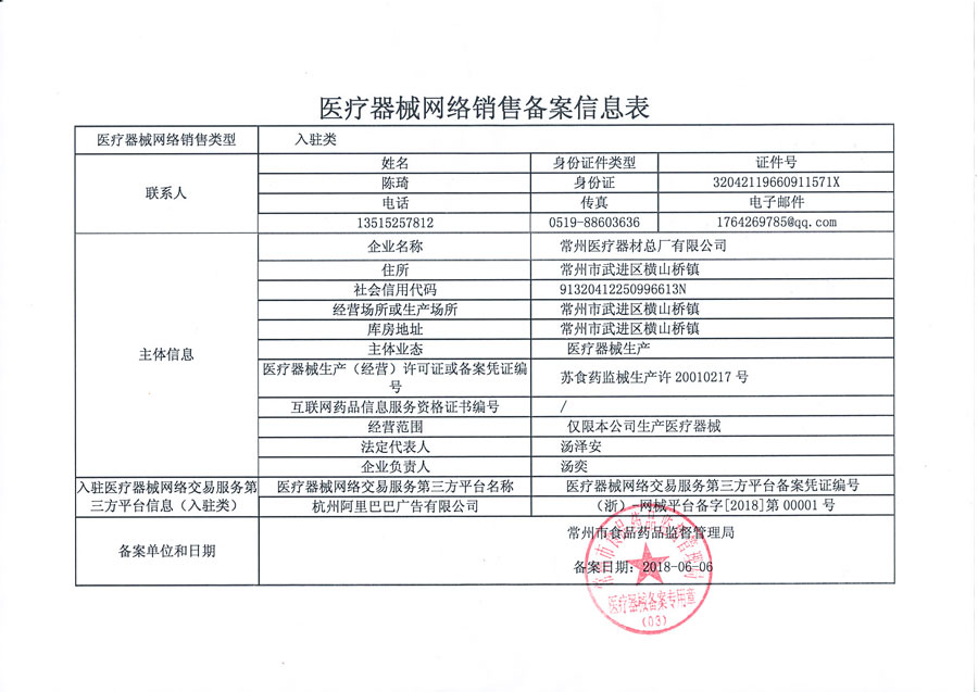 医疗器械网络销售备案表